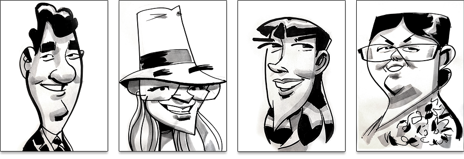 Det er en super icebreaker, når gæsterne samles om tegneren og hygger sig med at se på. Typisk deler folk deres portræt med det samme på sociale medier.