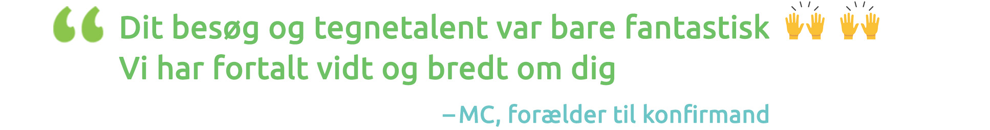 Jeg tegner konfirmanden og gæsterne. De unge mennesker jubler når der kommer en tegner.
